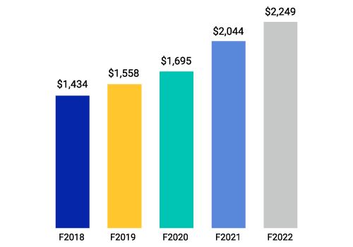 In 2022, these opportunities helped us achieve strong results despite significant market volatility. Among other highlights, MSCI delivered overall revenue growth of 10% — including recurring subscription-revenue growth of 16% — diluted earnings-per-share (EPS) growth of 23%, adjusted EPS growth of 15%, a record full-year retention rate of 95.2%, and share repurchases of nearly $1.3 billion. While the market unrest created headwinds and more variability for asset-linked fees, our index recurring subscriptions and transaction-volume businesses performed well through difficult operating conditions.