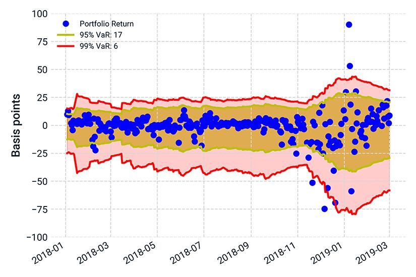 The fourth quarter of 2018 provided a real-world stress test of the leveraged-loan market — and of the RiskManager VaR model itself. The exhibit below illustrates how VaR measures responded to the substantial sell-off and subsequent rally. Note that the model's dynamics mirror the market turbulence and that the VaR violations for both the 95th and 99th percentiles are within the bounds of statistical confidence. One key difference with the crisis-era subprime market is the leveraged-loan market has experienced — and weathered — this sort of substantial market turbulence.
