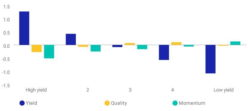 Companies with high dividend yield had low exposure to quality and momentum