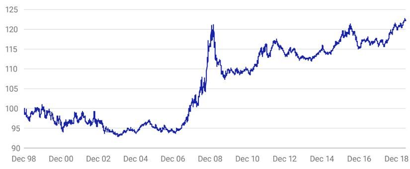 As seen earlier, the high dividend yield approach also performed better in terms total return and lower volatility over the past 20 years. It outperformed the simple yield selection by over 100 bps per year with a volatility 1.3 percentage points lower. The robustness of the approach was particularly visible during periods of economic and market stress, such as the GFC, the European sovereign debt crisis in 2011 and more recent periods.