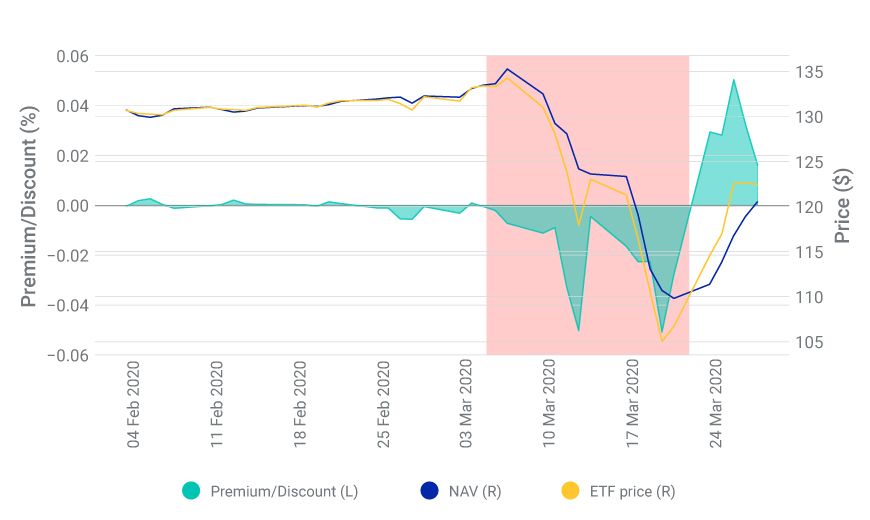 - Investors may worry that ETF prices can deviate from the value of the underlying basket during market stress, potentially leaving them exposed to NAV losses on top of the falling bond prices.