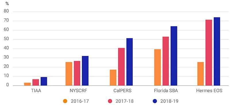 Source: MSCI ESG Research, based on data provided by Proxy Insight, covering U.S. listed companies for which such data was available.