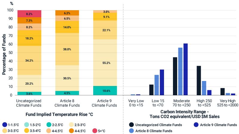 Implied temperature rise and carbon intensity of self-described 'climate' equity funds