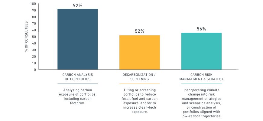 However, there are important regional distinctions. While European institutional investors generally showed more interest in carbon risk and management strategies, U.S. institutions preferred decarbonization/screening. Dissimilar U.S. and European regulatory regimes could explain the difference, though there is no favored approach even within Europe.