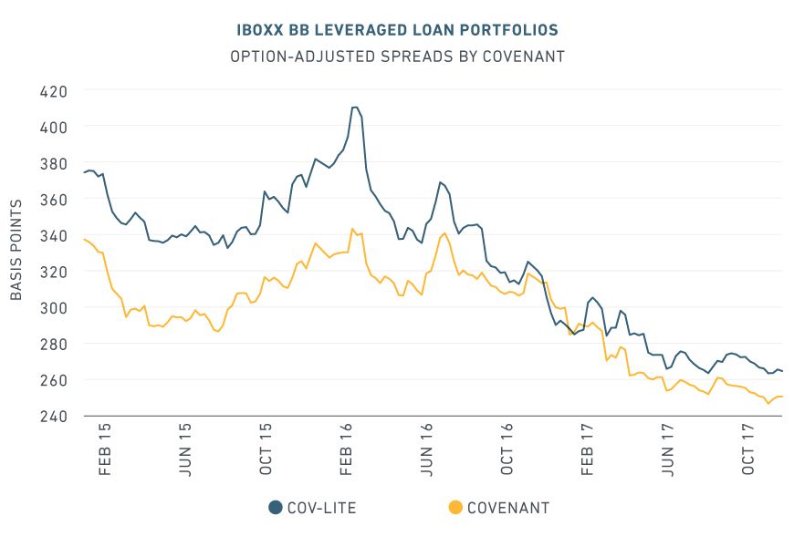 Loan investors have traditionally required borrowers to meet strict numerical targets on financial health, known as covenants. For example, a covenant could limit the issuer's leverage to some multiple of its free cash flow. Failure to abide by a covenant may require an issuer to compensate investors, for instance by providing additional collateral, higher coupons or one-time fees. By requiring issuers to maintain these covenants, investors can directly affect issuers' default probabilities. But as investor appetite for leveraged loans (also known as syndicated bank loans) has increased, many issuers have turned to less restrictive covenant-lite (cov-lite) loans, which offer investors less downside protection.