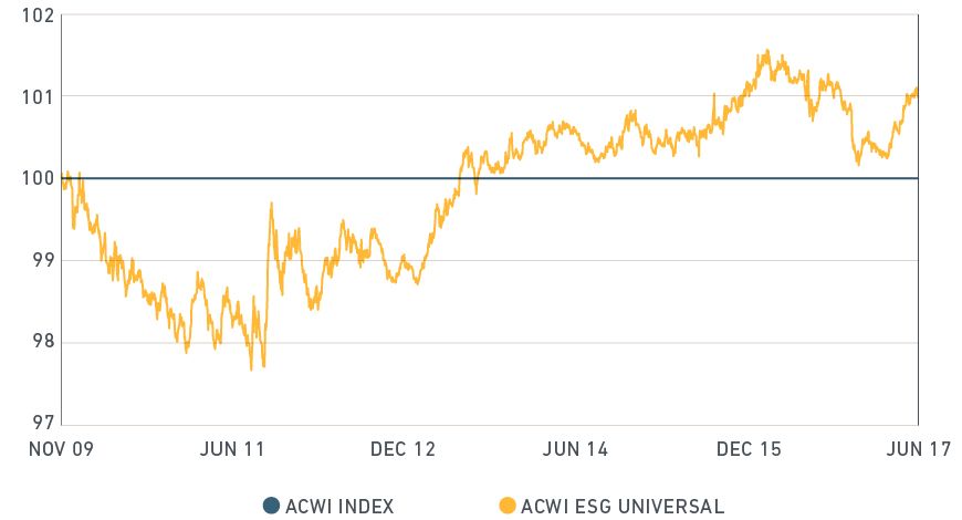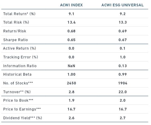 The MSCI ACWI ESG Universal Index Narrowly Outperformed the MSCI ACWI Index