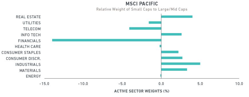 Small caps also behaved differently from their large- and mid-cap counterparts in business cycles. This is partly because small caps generally lean toward cyclical sectors such as industrials, materials, real estate and consumer discretionary stocks. They are less focused on defensive sectors such as telecom, health care, consumer staples and energy. However, while small-cap stocks are becoming more global, there are still important distinctions among small caps in different regions.
