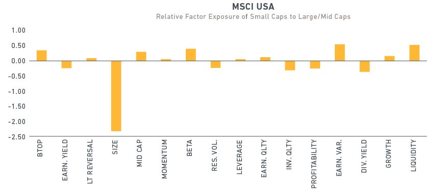 Active Factor Exposures – Small Caps Relative to Large/Mid Caps