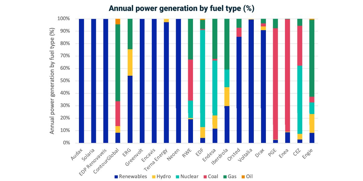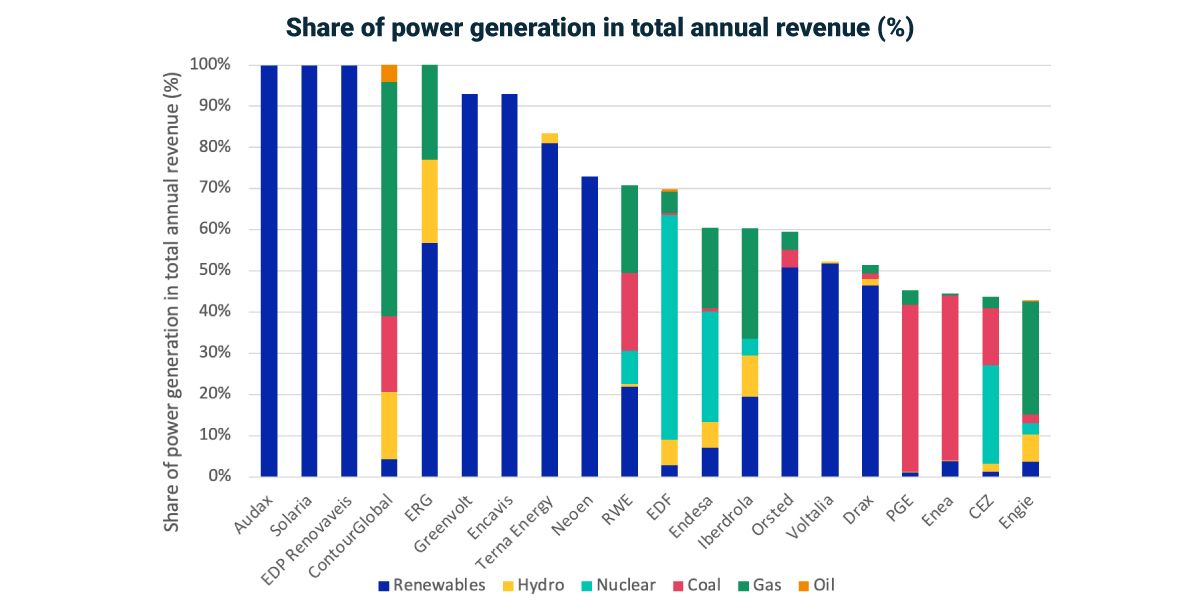 1 Data as of Sept. 8, 2022. Europe-domiciled utility constituents of the MSCI ACWI IMI with at least 40% of revenues coming from power generation based on the latest available full-year data. Source: MSCI ESG Research LLC