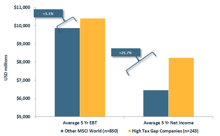 Exhibit 2: Comparison of Earnings Before Tax and Net Income between High Tax Gap Companies and Rest of MSCI World Index