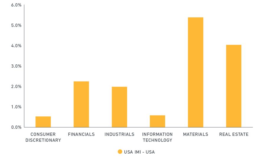Source: MSCI Research. Data from Dec. 31, 2015 to Dec. 30, 2016. The USA IMI Index is designed to measure the performance of large, mid and small-cap segments of the U.S. market.