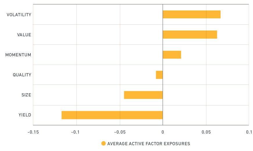 Cyclical sectors tilted toward volatility, value, momentum and size, which are all cyclical measures. A negative exposure to size implies a tilt toward smaller cap stocks. Meanwhile, cyclical sectors tilted away from defensive factors such as quality and yield.