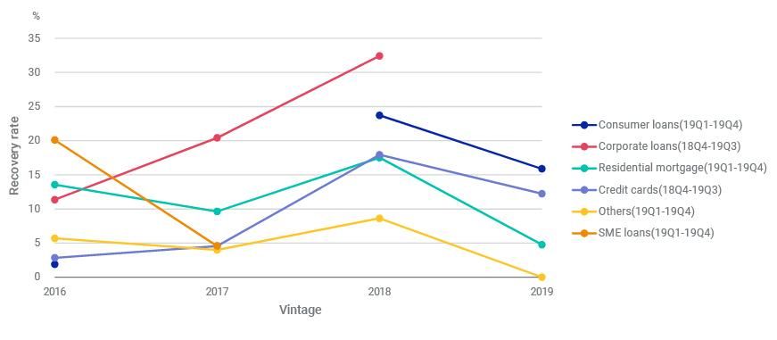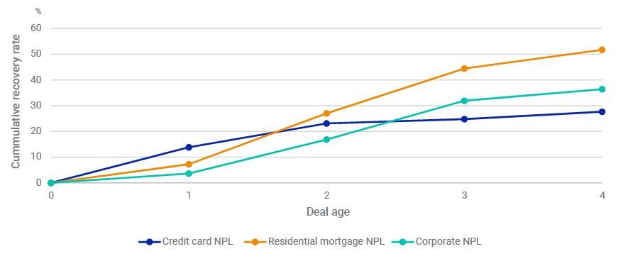 2019 recovery rates of various NPL-ABS collateral pools for 2016-2019 vintages. Source: MSCI, CNABS