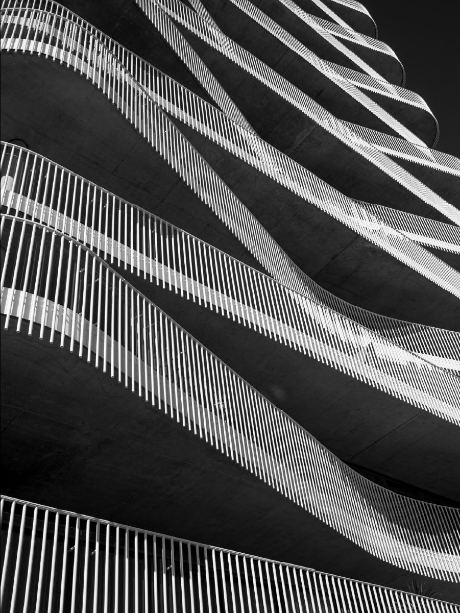 Blue grid of slightly distorted rectangular tiles with subtle shadows and curved vertical lines.