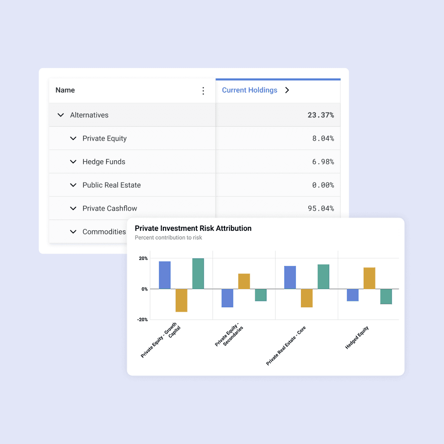 Model private asset risks and returns to show clients the performance of multi-asset portfolios, including those with private equity and real estate assets.