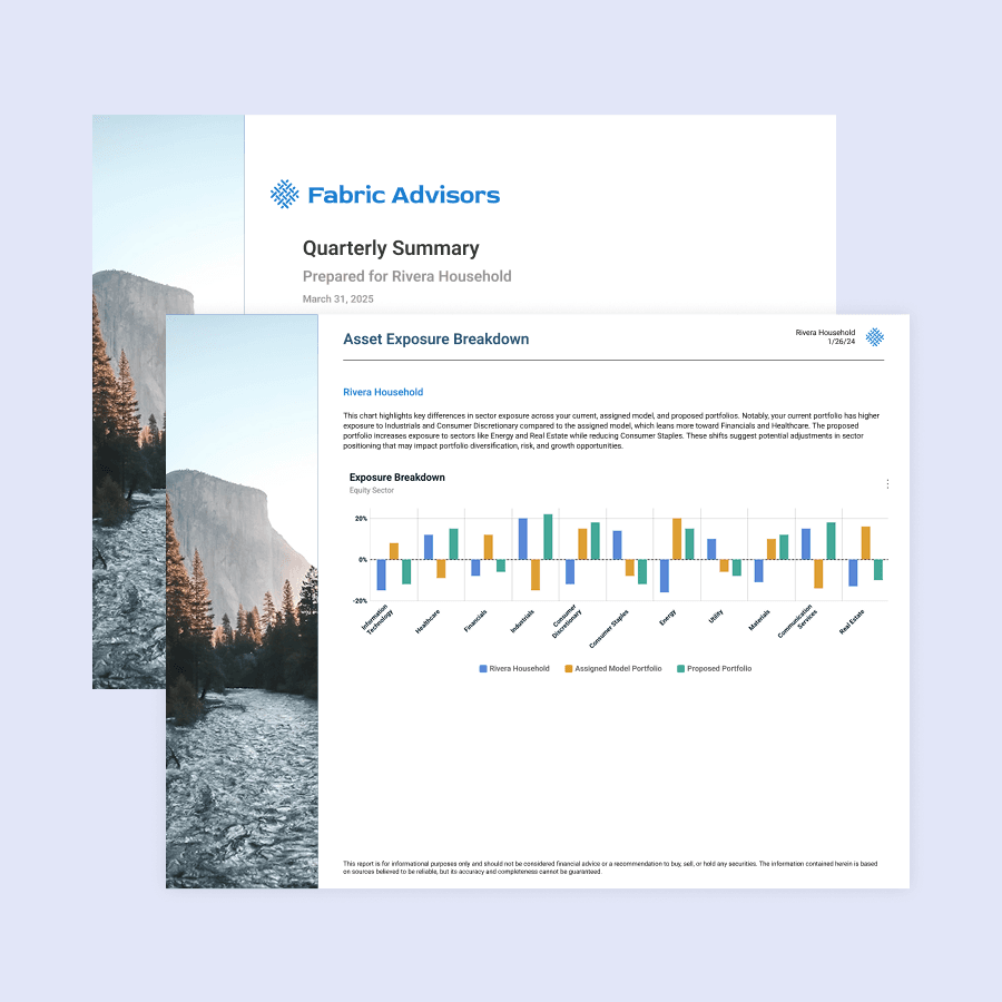 Monitor portfolio alignment with target models, run stress tests and generate tailored reports to communicate risk and performance to clients.