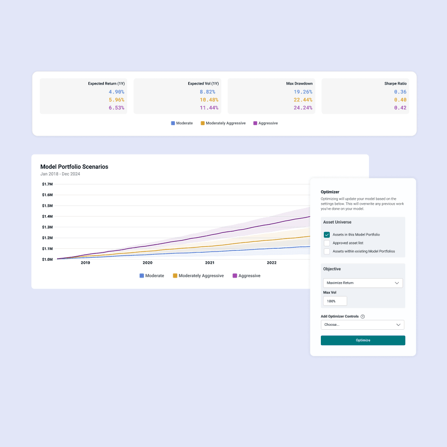 Develop projections and scenario analysis to help understand how portfolios may perform under different market conditions for a clearer view of potential outcomes and better decision-making.