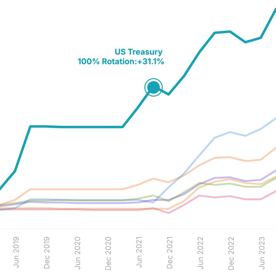 Duration Rotation Government Bond Indexes delivered cumulative returns vs parent indexes, led by U.S. Treasury 100% Rotation index.