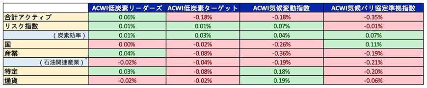 各種MSCI ACWI気候指数のエネルギーセクターへのアクティブ配分
