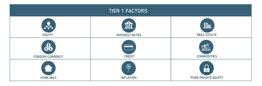 Since asset class weights can be loosely tied to the underlying exposures driving returns, factor-based asset allocation directly uses these exposures as the basis of the allocation decisions. Asset classes are relegated to the role of investment vehicles chosen to efficiently implement the desired factor exposures, much as individual stocks can be seen as conduits for equity factor exposures. At the highest level, the most important factors driving a broad, multi-asset class portfolio are the "Tier 1" factors, as described in our soon-to-be-released paper, "The MSCI Multi-Asset Class Factor Model."