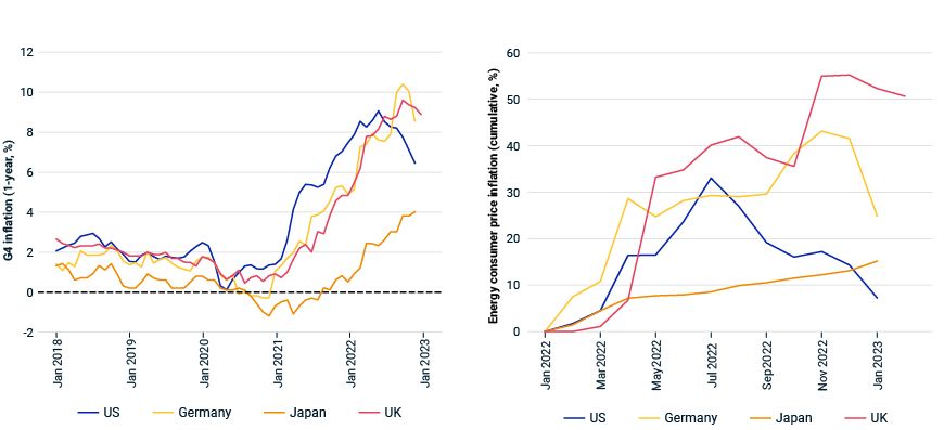 Contrary to what many would have expected, given Europe's proximity to the war, European equity markets did not do as badly as feared and — in fact, if measured in local currency over the one-year period — ended up 2%. The U.S. dollar's strengthening against major European currencies did pull down the MSCI Europe Index's USD returns (for international investors) to 3%, but the dispersion of returns among European countries remained high. Countries with both geographical proximity to the conflict zone and gas dependency on Russia (notably, Hungary, Poland and Germany) exhibited high negative returns. The U.K. had a strong finish to the year despite being hit hard by energy-price inflation.