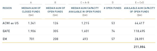 While it appears that there is adequate capacity available in open U.S. small-cap funds to absorb potential demand, the shortfall may occur in funds that invest in smaller stocks outside the U.S. We have tried to estimate this shortfall.