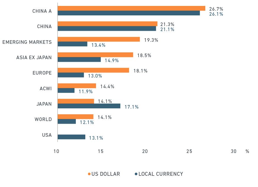 China A managers and China A Minimum Volatility Index returns vs. MSCI China A Index