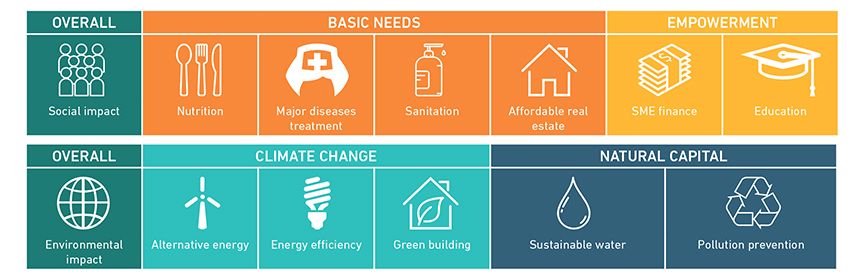 The SDGs, which took effect in January, aim to end poverty, protect the planet and ensure prosperity worldwide via a series of targets to be achieved by 2030. To build a framework for institutional investors to align with these goals, MSCI ESG Research grouped the 17 SDGs into five actionable themes: basic needs, empowerment, climate change, natural capital and governance.