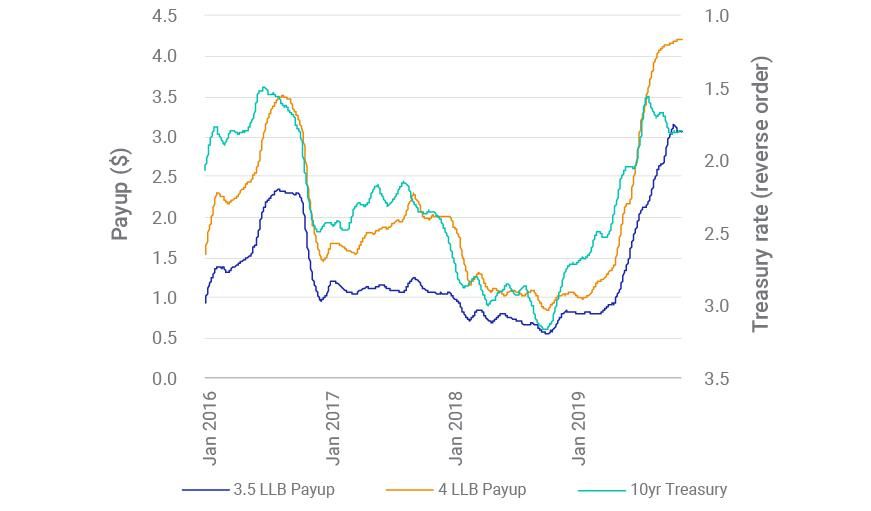 - We identified three potential prepayment themes for 2020: Refinancing burnout could set in; payup value of collateral with call protection may erode; and a further rate rally could lead to an even stronger refinance wave.
