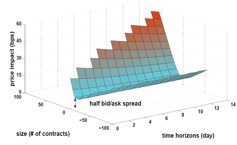 LiquidityMetrics offers portfolio managers and risk professionals a rigorous way to quantify the liquidity risk of financial instruments across all asset classes. LiquidityMetrics looks at an asset's liquidity in its entirety, modelling the interplay between transaction costs, liquidation time horizons and size effects of possible future actions taken on a portfolio. To this end, the liquidity of a given asset is portrayed via its "liquidity surface", defined as the expected transaction cost of an order executed within a specified time horizon (see below exhibit for a hypothetical example).