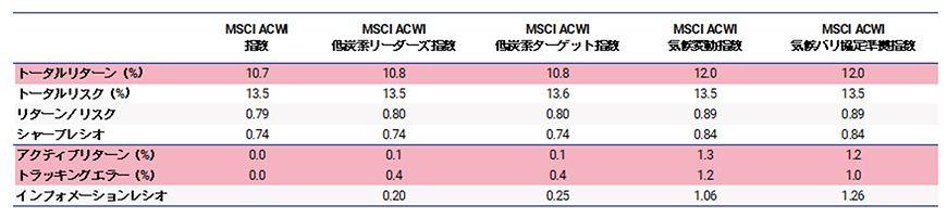 - 各種MSCI気候指数は気候変動やパリ気候協定に整合する目標を盛り込んでおり、気候変動対策と気候目標達成の両面で継続的に力強い成果を上げています。