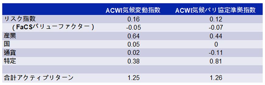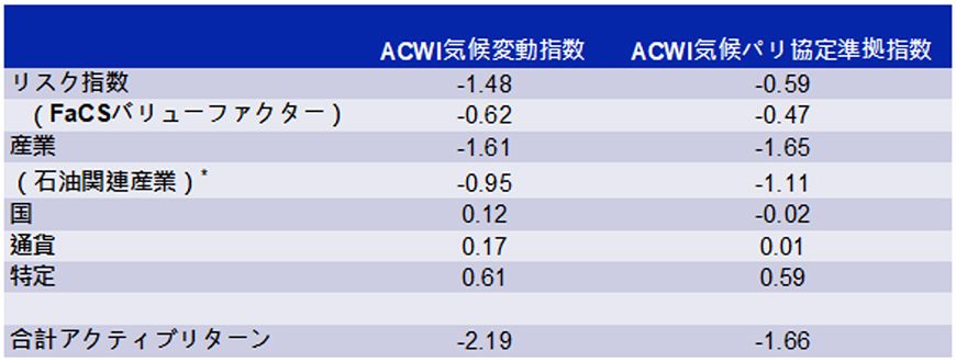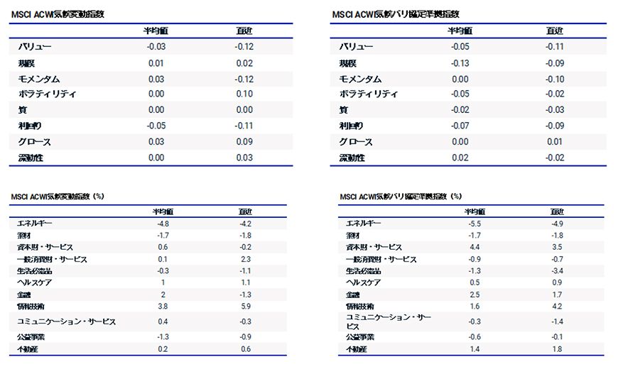前述のとおり、6月30日までの年初来パフォーマンスにおいて、バリュー株とエネルギーセクターのアンダーウェイトがマイナスに採用しています(下表参照)。半導体やソフトウェア・サービスといった情報技術セクターなど、MSCI ACWI気候変動指数がオーバーウェイトして足を引っ張ったセクターがあります。