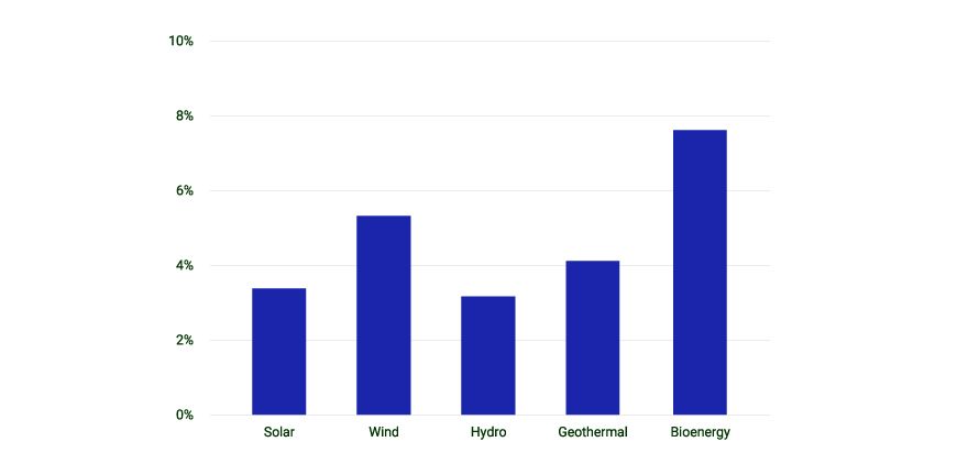 Penetration of renewable-energy project subtypes by market (% electricity production)
