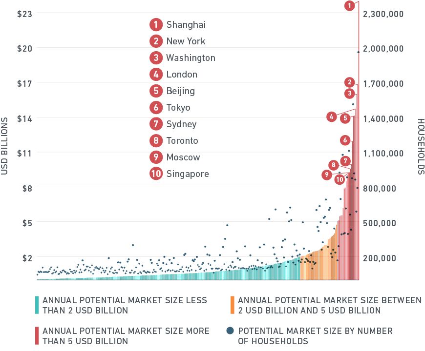 The report identified top 10 cities, including Shanghai, New York, Washington D.C., Seoul, and London, with the largest potential for offering affordable housing both in terms of the number of households that meet investment criteria, as well as the size of the investable universe (30% of the global sample of 307 cities).