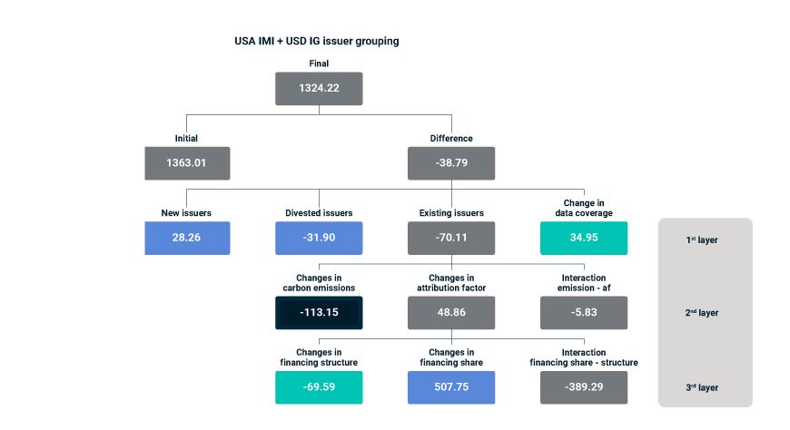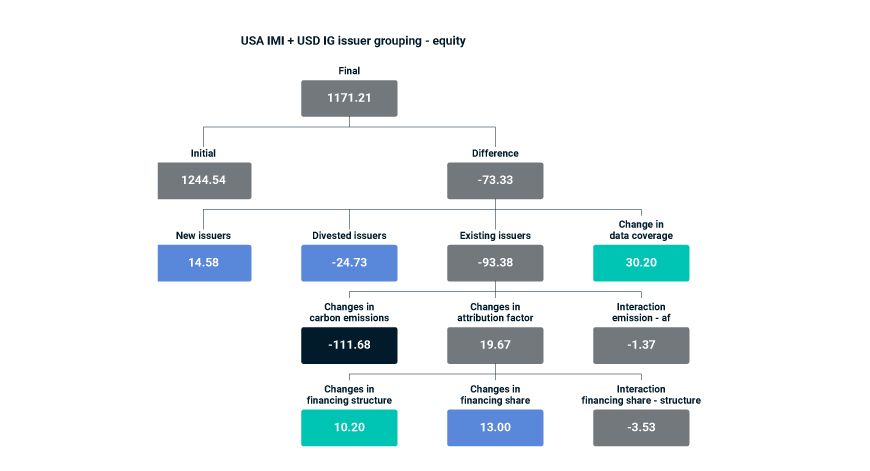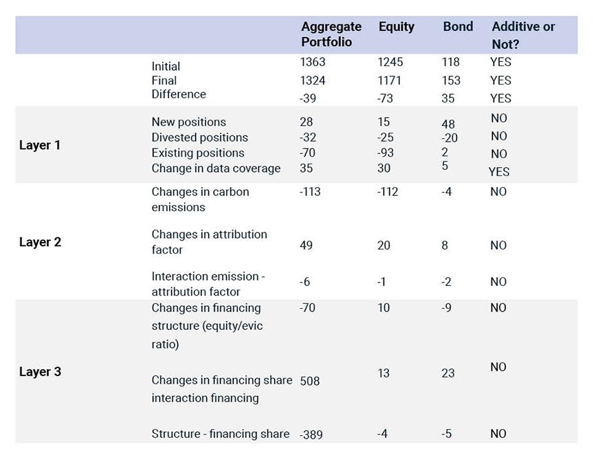- Changes in the attribution factor in consistently held issuers contributed 48.86 Mt of the emission increase.4