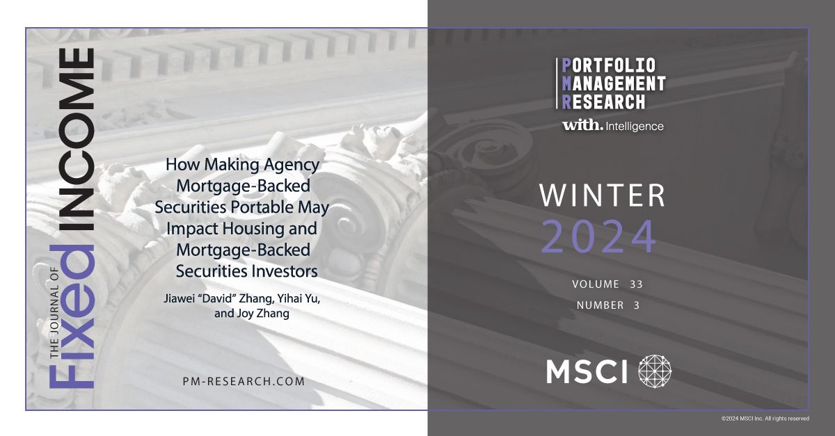 U.S. mortgages are generally not portable. While there would be legal hurdles to overcome to reverse the situation, such a move could benefit not only homeowners, but potentially investors in mortgage-backed securities. ©2024 With Intelligence. Republished with permission from the Journal of Fixed Income, from: David Zhang, Yihai Yu, and Joy Zhang, "How Making Agency Mortgage-Backed Securities Portable May Impact Housing and Mortgage-Backed Securities Investors," Journal of Fixed Income 33, no. 3 (winter 2024).