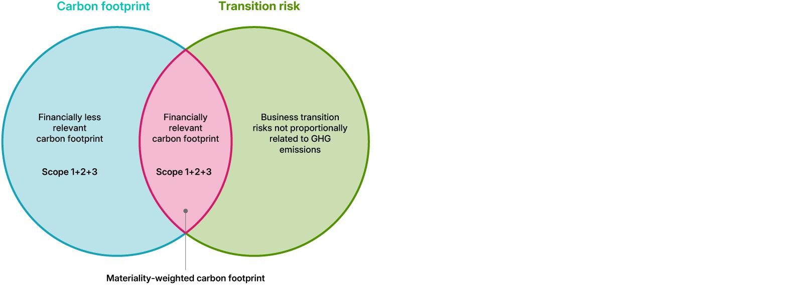 The total carbon footprint of a portfolio has commonly been used both as a measure of that portfolio’s climate impact and as a measure of transition risk. However, we found that impact and risk measurement may require different approaches. A tonne of CO2 has the same impact on our climate no matter where or how it's emitted. But when it comes to a company's transition risk, not all emissions are created equal. Some emissions matter more, depending on where they come from and the industry context. We found that investors could get a better signal by focusing on a materiality-weighted carbon footprint.