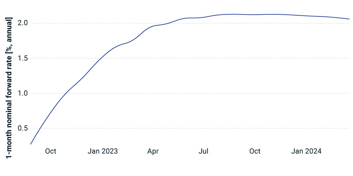 One-month nominal forward rate based on eurozone overnight-indexed-swap (OIS) rates as of Aug. 26, in percent annual.