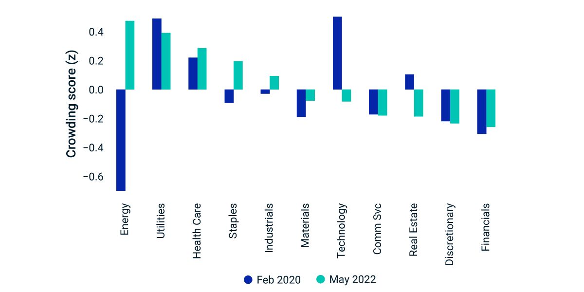 Lofty returns and a shrinking opportunity set could be a recipe for a crowded trade. According to the MSCI Security Crowding Model, energy is the most crowded of all sectors, largely due to rising valuations and short interest. That is quite a turnaround for a sector that was shunned by investors just two years ago at the onset of pandemic-related demand destruction.
