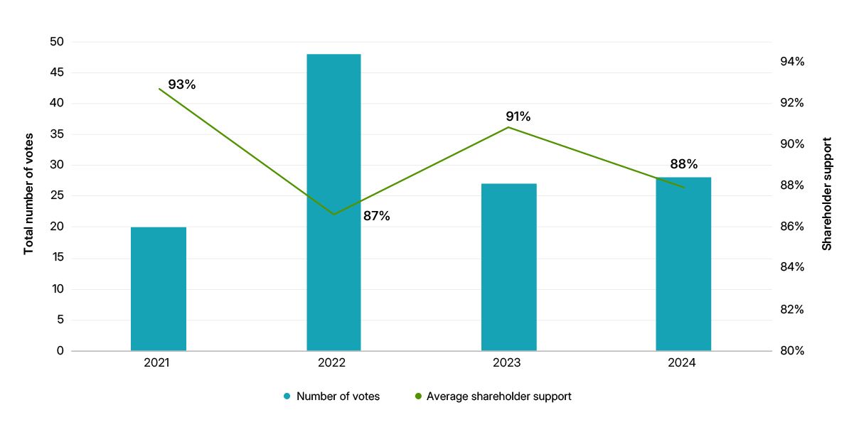 Average shareholder support declined in 2024 vs. 2023