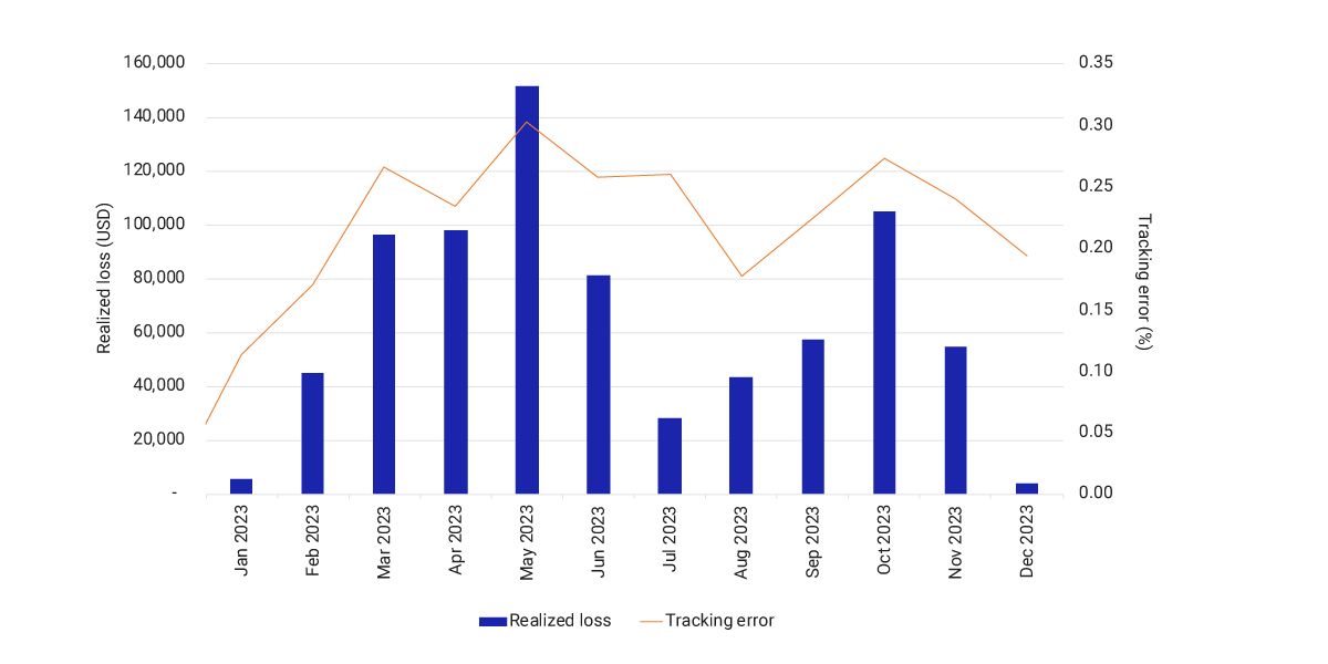 Hypothetical USD equity portfolio’s realized short-term losses and tracking error
