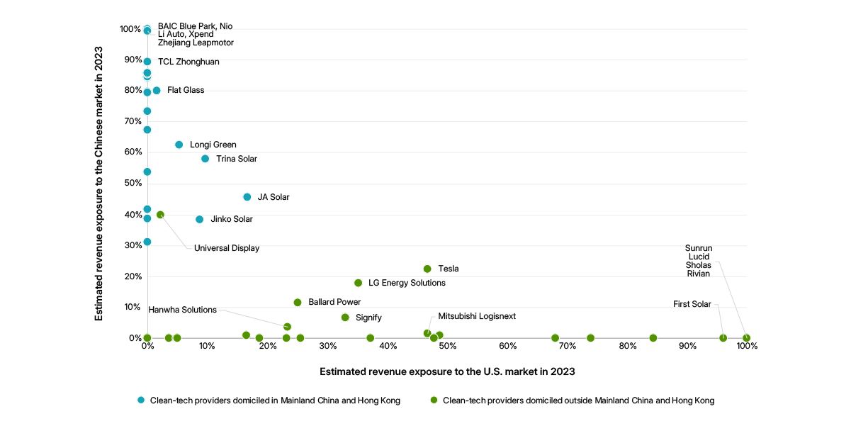 The US-China split among top clean-tech providers