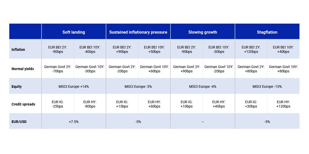 The question for investors is whether the ECB's rate hike could bring inflation down at the cost of "Slowing growth" or whether we are headed for the grimmer "Stagflation" outcome. According to our scenarios, for a diversified portfolio with European equities, bonds and real estate, the "Slowing growth" scenario could result in a -2% medium-horizon return. This is far better than the 10% loss under "Stagflation." Whether or not an additional energy-supply shock occurs may be a crucial factor to watch.