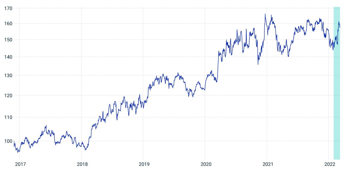 We can see this in merger-and-acquisition activity, as well as market performance. Google's parent company, Alphabet Inc., recently announced it would acquire cybersecurity firm Mandiant Inc.,1 and the MSCI ACWI IMI Cybersecurity Index, which tracks the performance of companies with products and services that protect against cyberattacks, has outperformed the broad market since Russia's invasion of Ukraine through March 9.