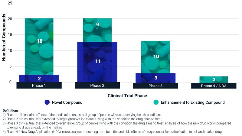 Despite years of warnings from epidemiologists,¹ the COVID-19 outbreak caught the world off guard. Even as we continue to battle this pandemic, the next global health crisis is already looming: By 2050, 10 million people a year could die from previously treatable bacterial infections.² That's more than triple the number who died of COVID-19 in 2020 alone.³ The only way out of this might be major investments in new antibiotics and a drastic reduction in their quotidian use, especially in agriculture. On the positive side, the pandemic has shown how fast we can invent a solution when given global collaboration and the right financial incentives. Vaccine development was once a backwater market with unappealing investment returns compared to more profitable drugs. But now we have had breakthroughs, often due to small, private companies and that's where much of the early, and possibly innovative, antibiotic work is happening too.⁴ The chart below shows how those companies are building the pipeline of new antibiotics and getting novel compounds into clinical trials. It is the next big hurdle for humanity, but one we must be ready for.