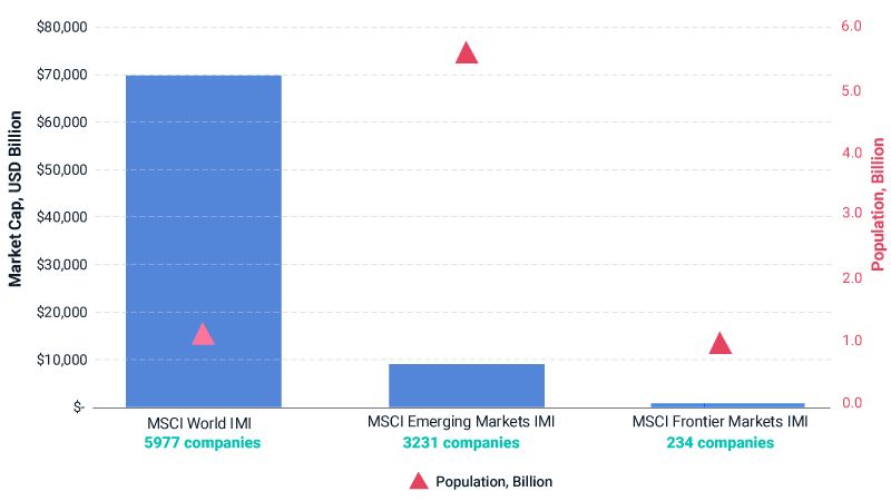 As the captains of private finance begin to steer global capital toward achieving net-zero, many are realizing that efforts to stem climate risk won't succeed on the systemic level if we leave behind the most vulnerable populations, communities, and countries. The question of the day is: Are there areas where "need" and "investability" overlap? You can see in the chart below that there is a disproportionate amount of assets invested in companies operating in highly developed economies. This is true for public debt and in the private equity and debt space. For our world to facilitate a just transition, developing and frontier markets — and those not even sufficiently developed to qualify as frontier markets — need more and creative conduits if they hope for wider investor financing. And those channels arise when investors start to look further afield for their capital allocations.