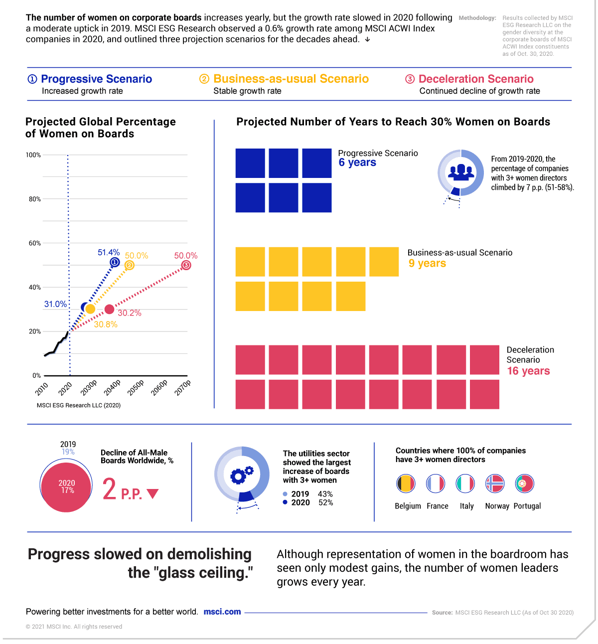 When will we reach 30% women directors on publicly traded companies around the world? We explore three scenarios.