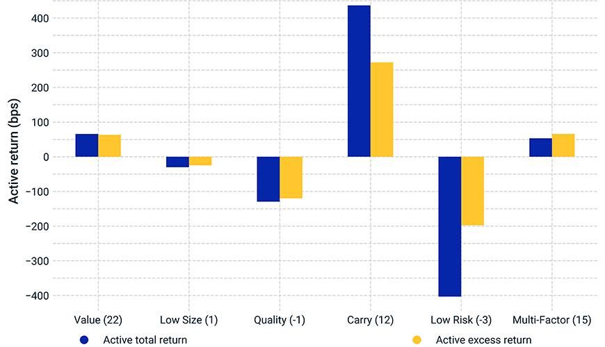 Factors have gained popularity in equity investing for potentially providing insight into the key drivers of portfolio risk and returns. In a new research paper, we examined (among other things) whether tilting hypothetical fixed-income portfolios toward some bond-specific factors would have benefited investors, over the period of our analysis (September 2005 to June 2019). We focused on USD investment-grade corporate bonds because of their higher yet stable cash flows relative to the low- and negative-yielding debt issued by developed-market governments.2 Varying the simulated portfolios' exposures to value, low size, quality, carry and low risk delivered outperformance on an absolute or risk-adjusted basis, during our study period.3