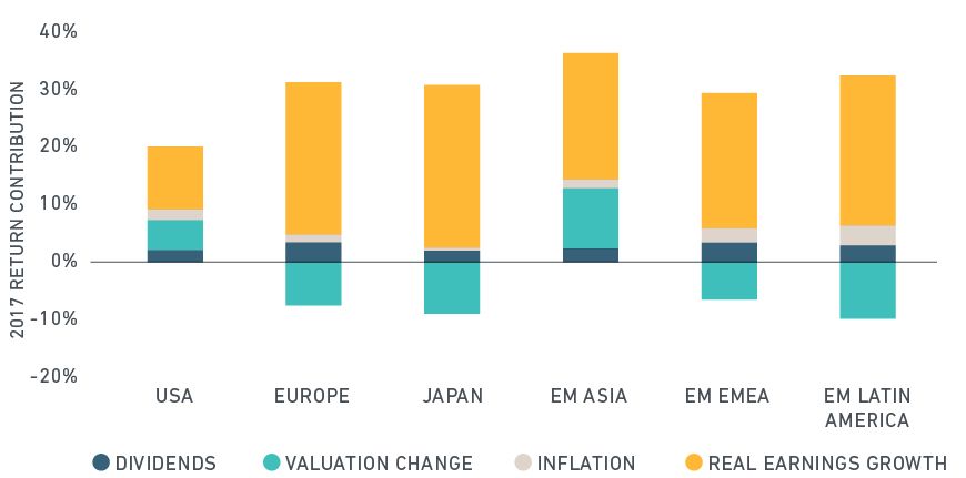 Real earnings growth drove returns in 2017