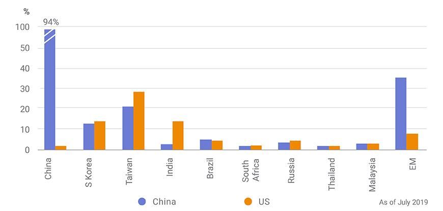 The U.S.-China trade war may also have an impact on EM currencies, whether directly if a country embarks on currency depreciation or indirectly if the trade war triggers an economic slowdown, which might change the valuation of a country's currency. In particular, the weakness or strength of the U.S. dollar historically had implications for countries such as Taiwan, Russia and Brazil.